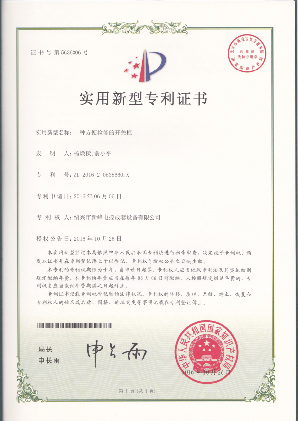 ZL 2016 2 0538660.X-企業(yè)專(zhuān)利證書(shū)